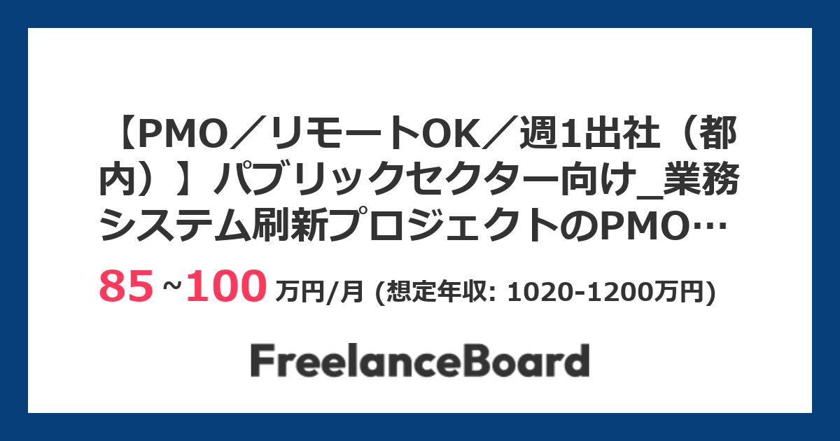【PMO/リモートOK/週1出社(都内)】パブリックセクター向け_業務システム刷新プロジェクトのPMOリードのフリーランス案件・求人情報 ...