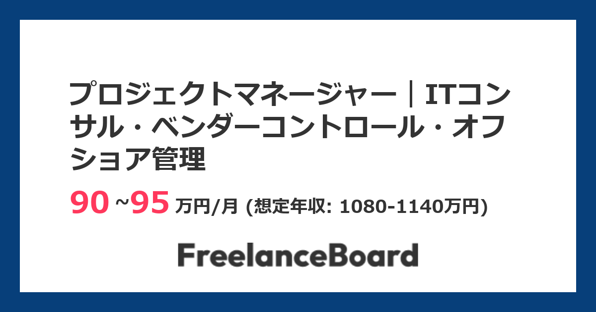 プロジェクトマネージャー|ITコンサル・ベンダーコントロール・オフショア管理のフリーランス案件・求人情報 - | フリーランスボード