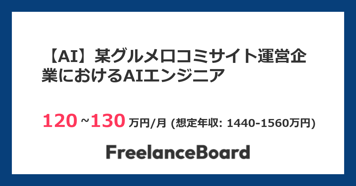 【AI】某グルメ口コミサイト運営企業におけるAIエンジニアのフリーランス案件・求人情報 - | フリーランスボード