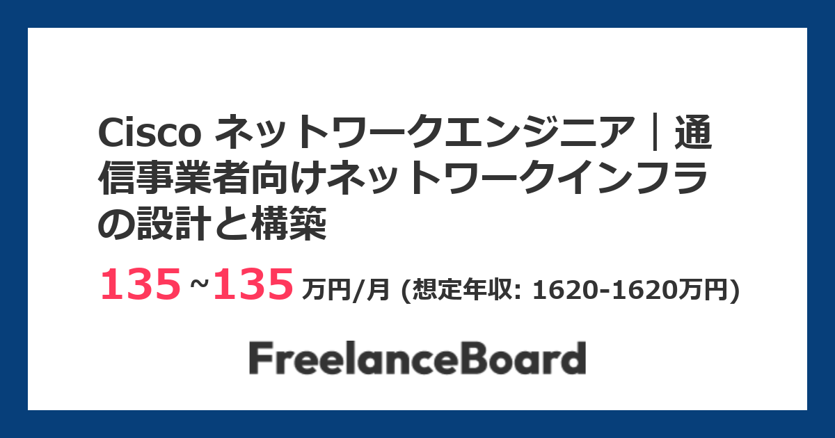 Cisco ネットワークエンジニア|通信事業者向けネットワークインフラの設計と構築のフリーランス案件・求人情報 - | フリーランスボード