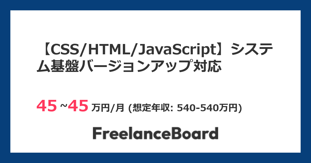 【CSS/HTML/JavaScript】システム基盤バージョンアップ対応のフリーランス案件・求人情報 - | フリーランスボード