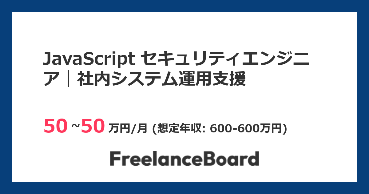 JavaScript セキュリティエンジニア|社内システム運用支援のフリーランス案件・求人情報 - | フリーランスボード