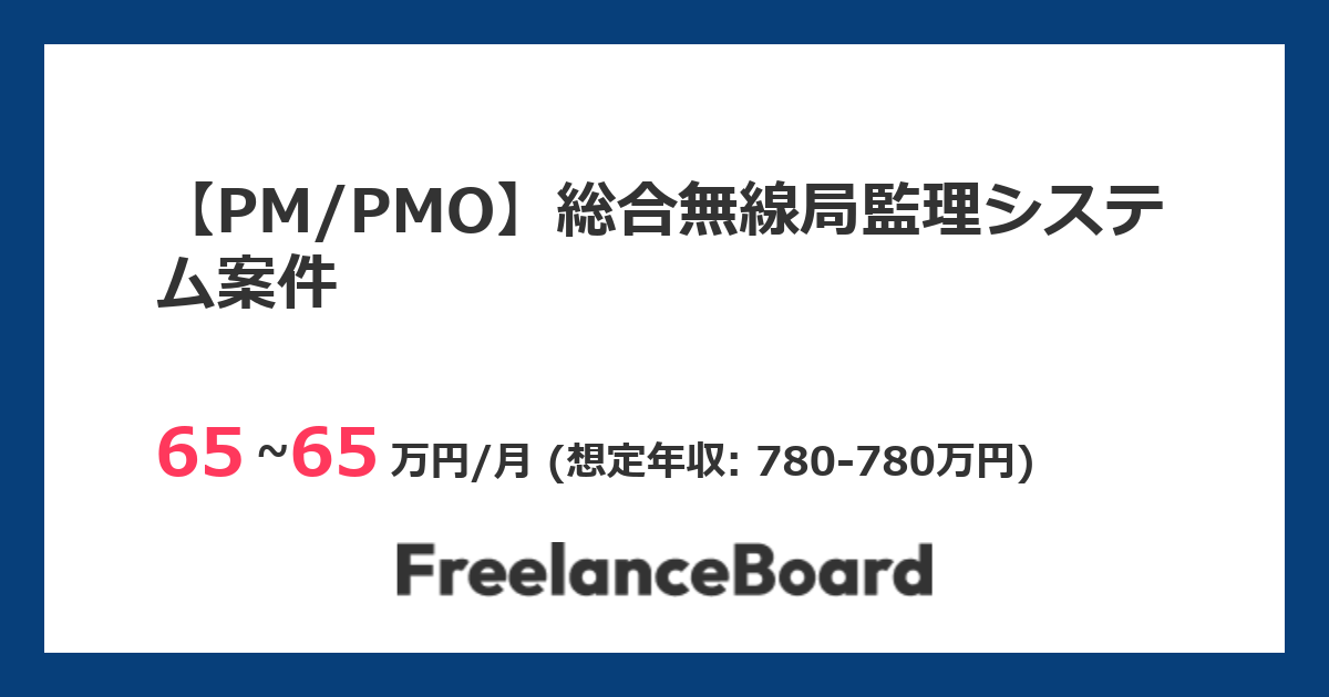 【PM/PMO】総合無線局監理システム案件のフリーランス案件・求人情報 - | フリーランスボード