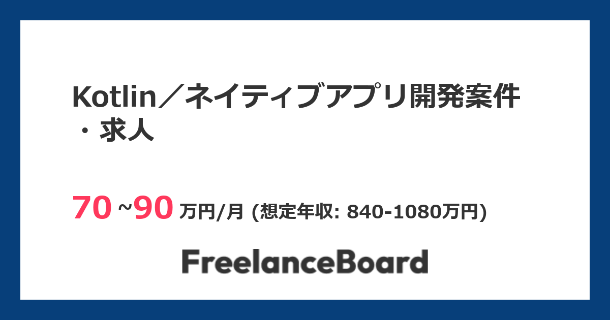 Kotlin/ネイティブアプリ開発案件・求人のフリーランス案件・求人情報 - | フリーランスボード