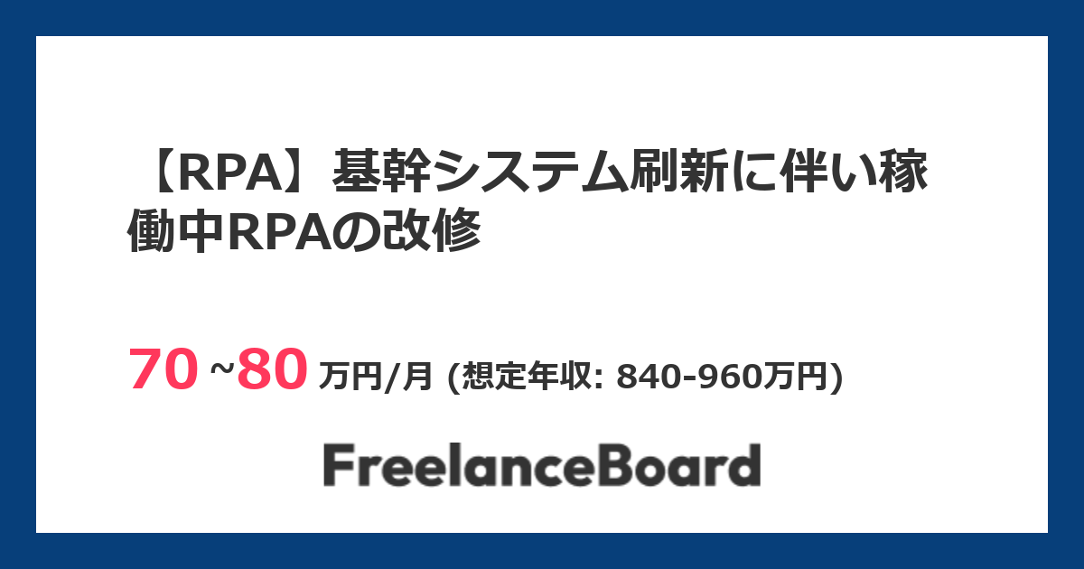 【RPA】基幹システム刷新に伴い稼働中RPAの改修のフリーランス案件・求人情報 - | フリーランスボード