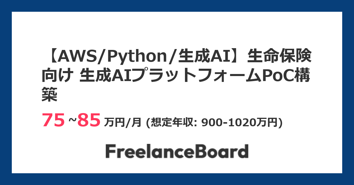 【AWS/Python/生成AI】生命保険向け 生成AIプラットフォームPoC構築のフリーランス案件・求人情報 - | フリーランスボード