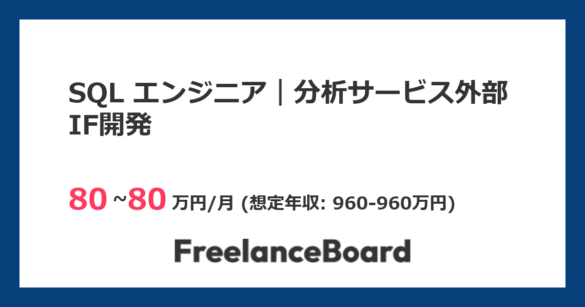 SQL エンジニア|分析サービス外部IF開発のフリーランス案件・求人情報 - | フリーランスボード