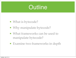 Byte code manipulation and instrumentalization in Java | PPTX