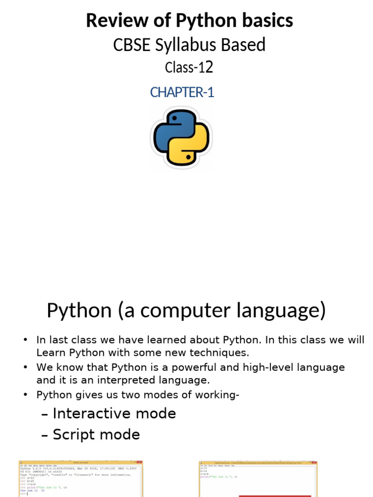 SOLUTION: Class 12 computer science with python chapter 2 python ...