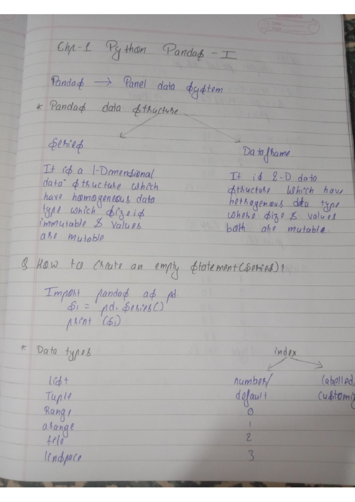 IP Notes: Chapter 1 - Python Pandas Data Structures & Series - Studocu