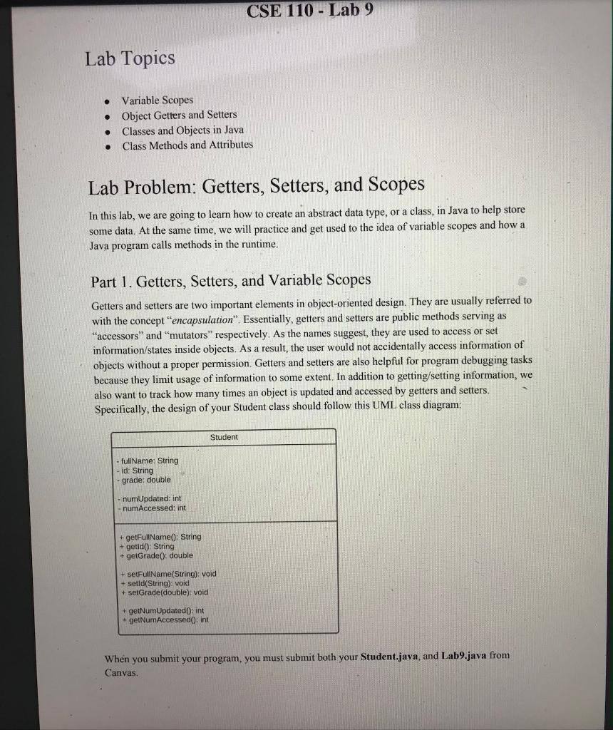 Solved CSE 110 - Lab 9 Lab Topics Variable Scopes Object | Chegg.com