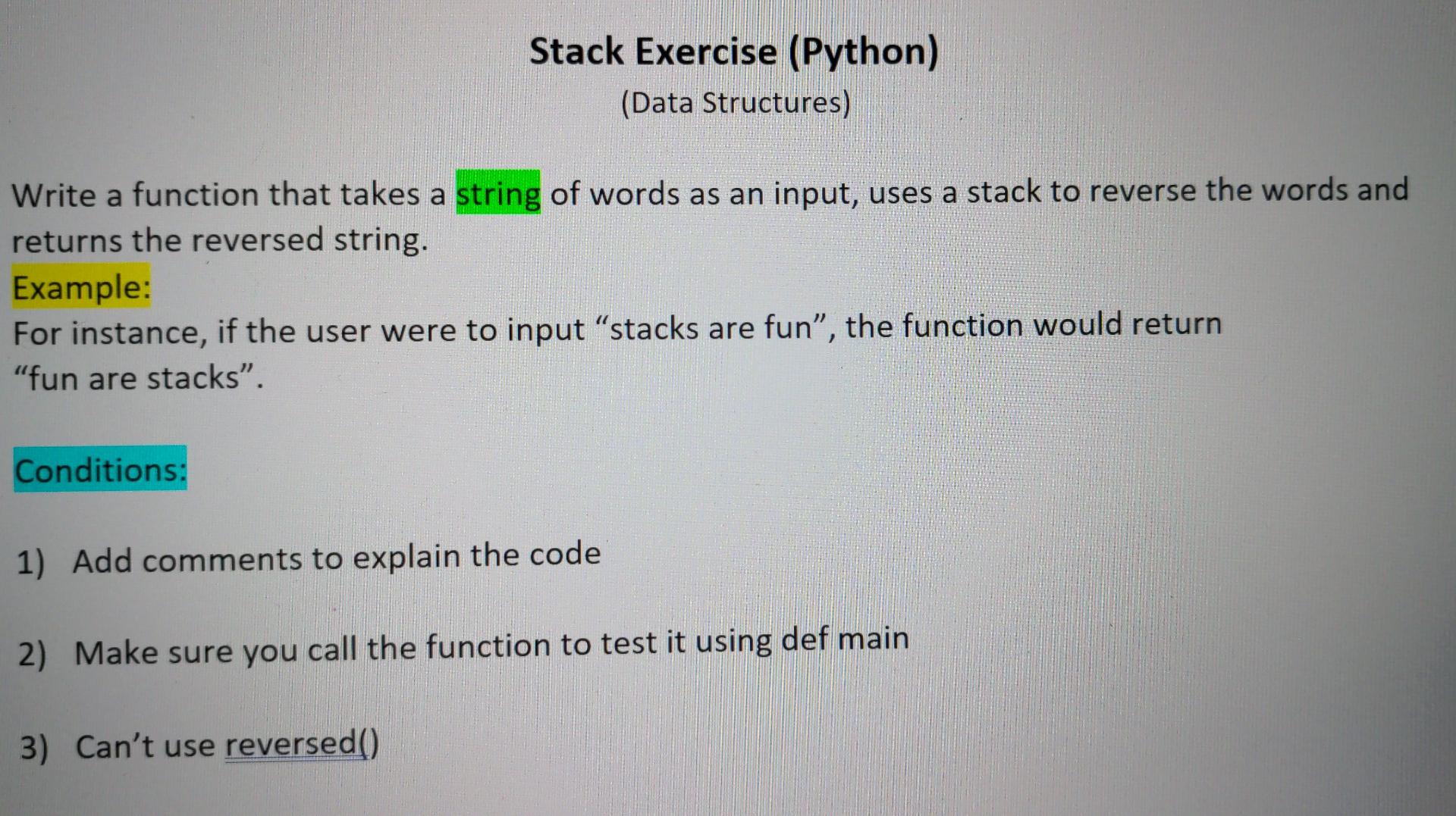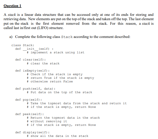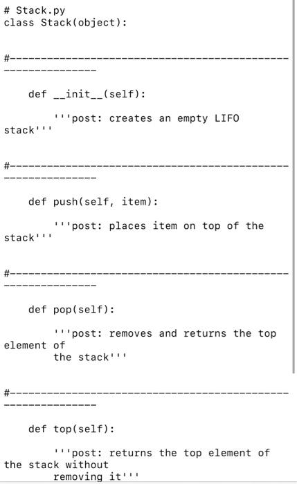 Solved Stack Exercise (Python) (Data Structures) Write a | Chegg.com