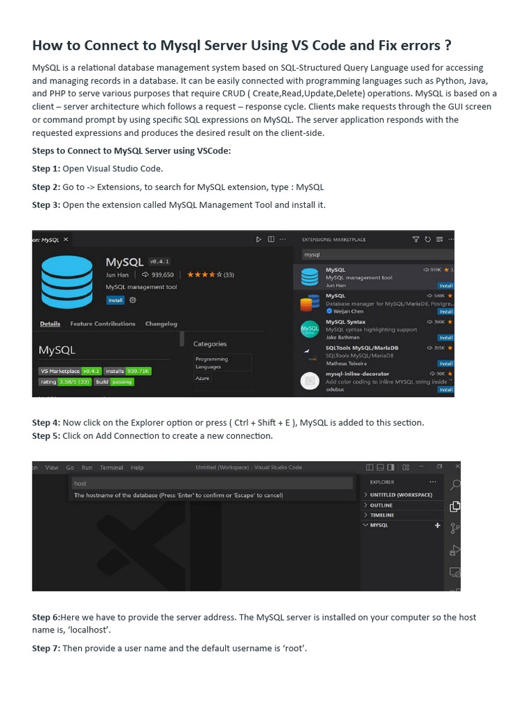 How To Connect To Mysql Server Using VS Code and Fix Errors | PDF