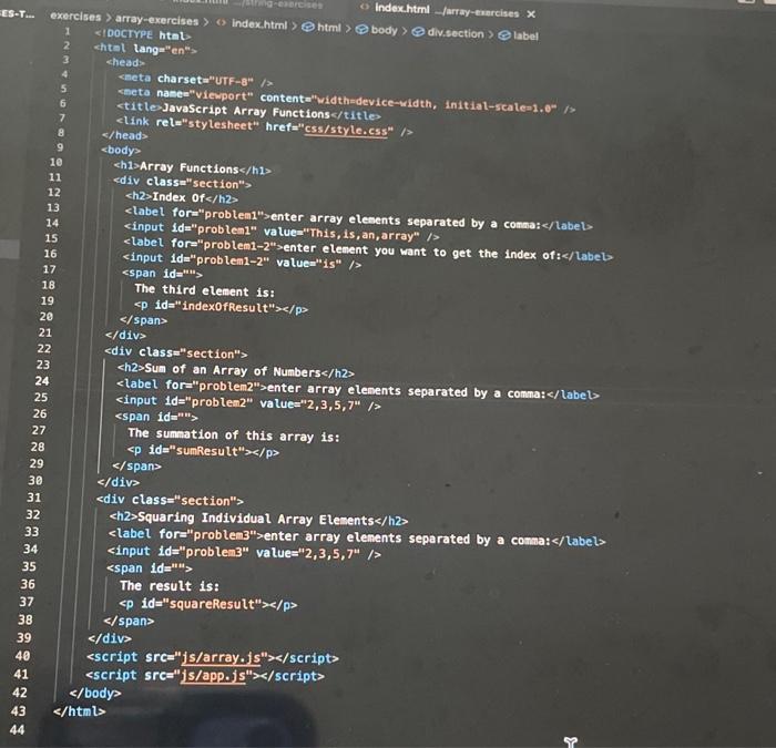 1. Open the array exercises html file in your | Chegg.com