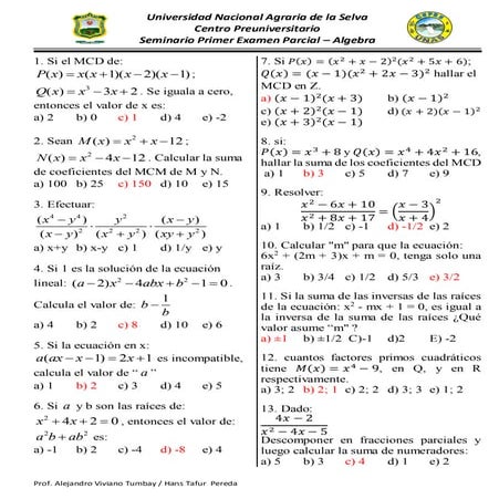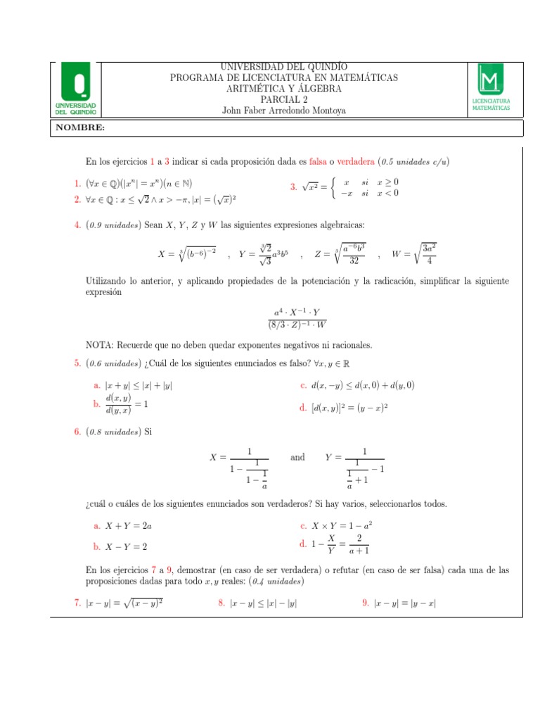 Parcial 2 | PDF | Álgebra | Enseñanza de matemática