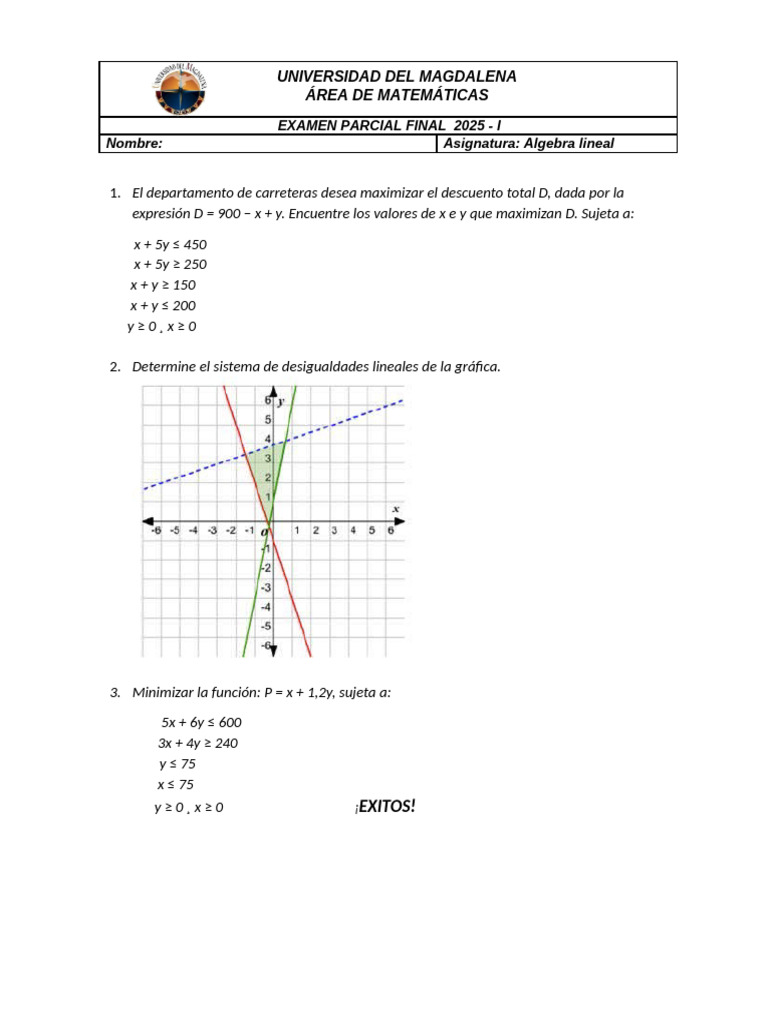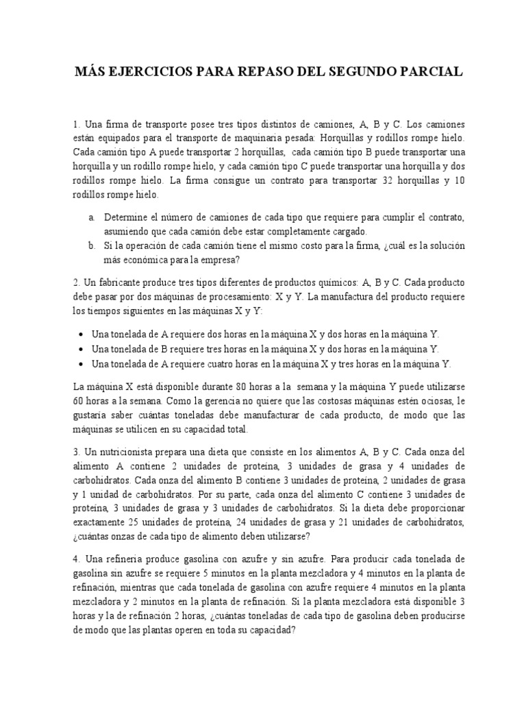 Ejercicios Segundo Parcial Álgebra | PDF | Matriz (Matemáticas) | Camión