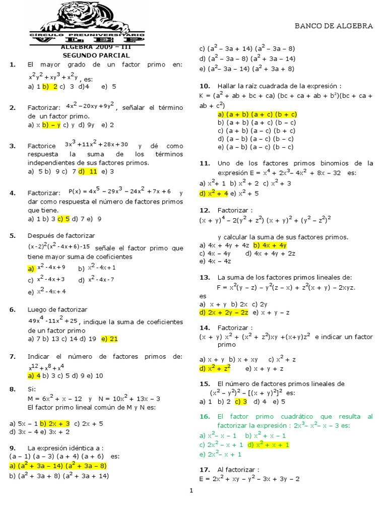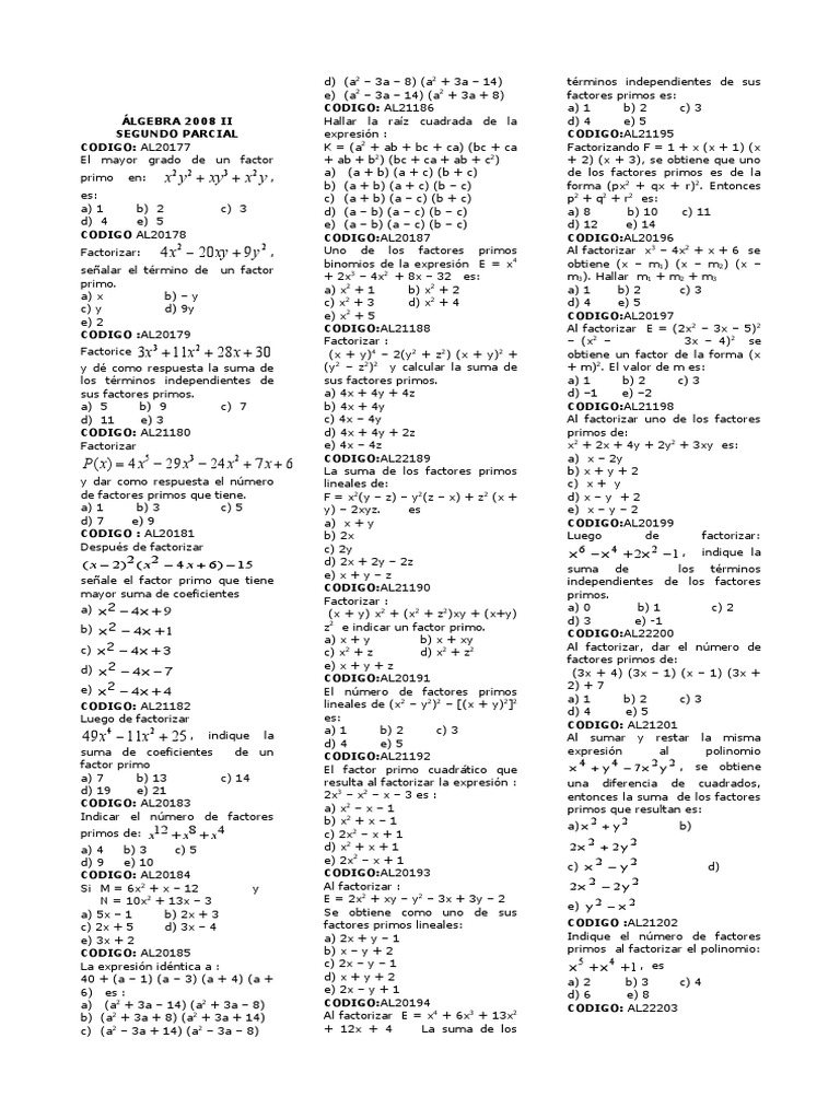 Algebra - II Parcial - 1-5 Correlativos | PDF | Factorización ...