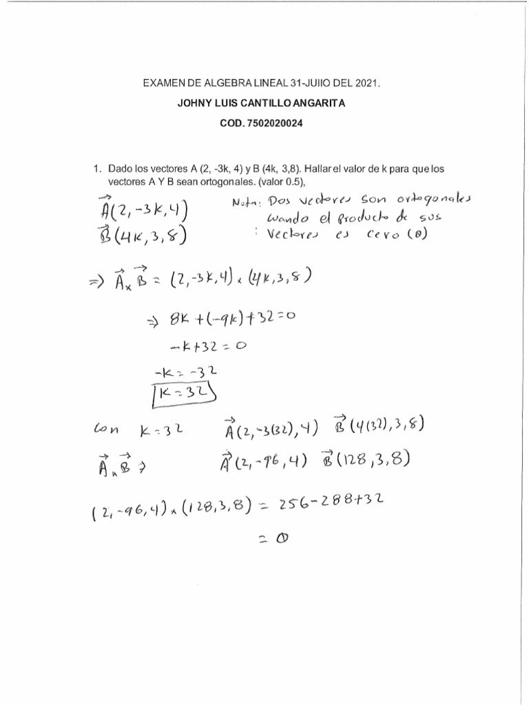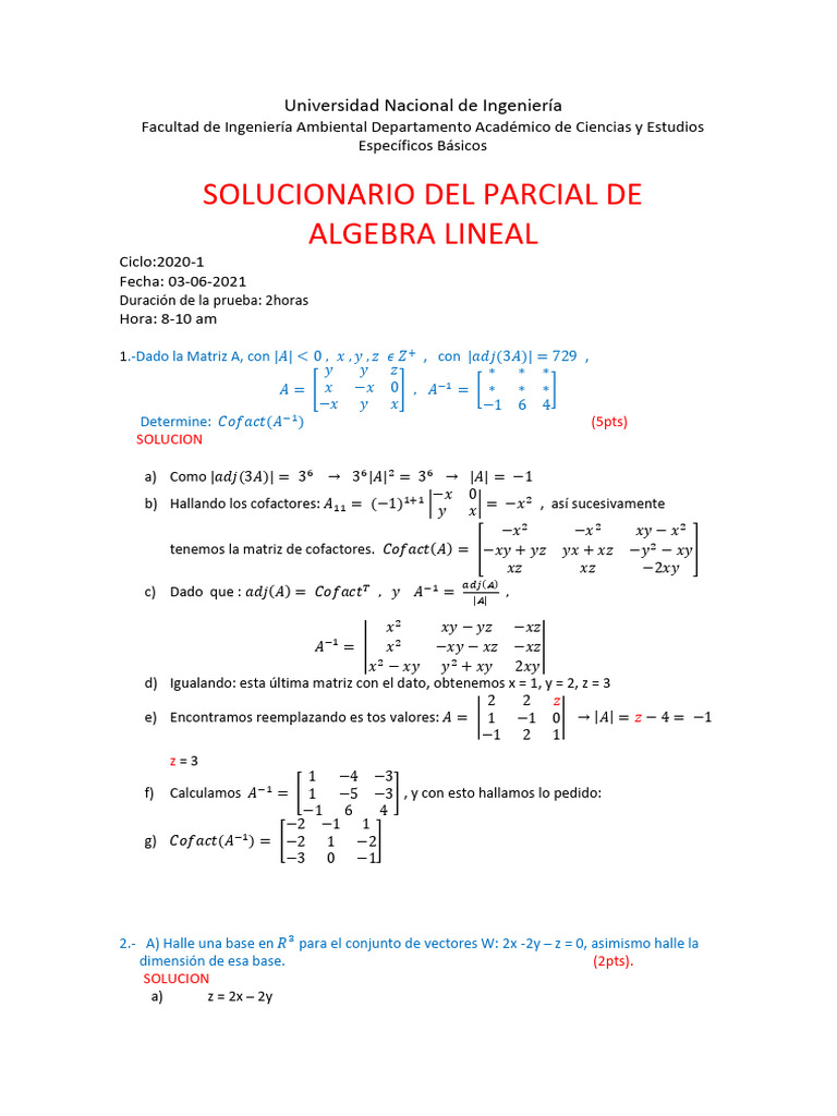 Solucionario Del Examen Parcial de Algebra Lineal Junio 2021 | PDF ...