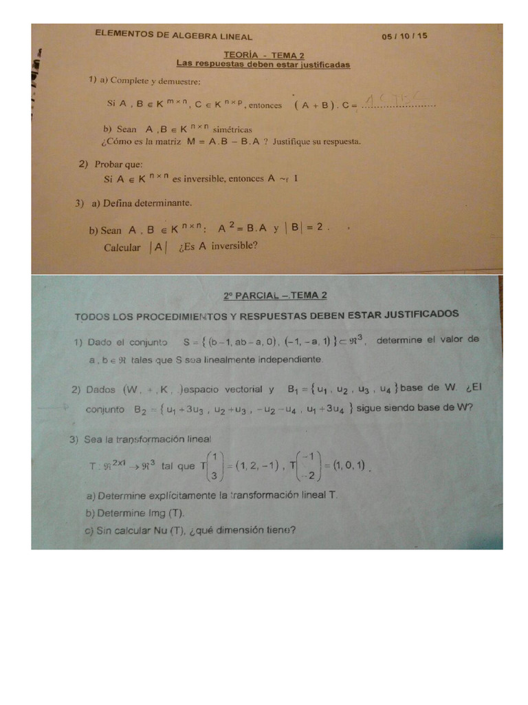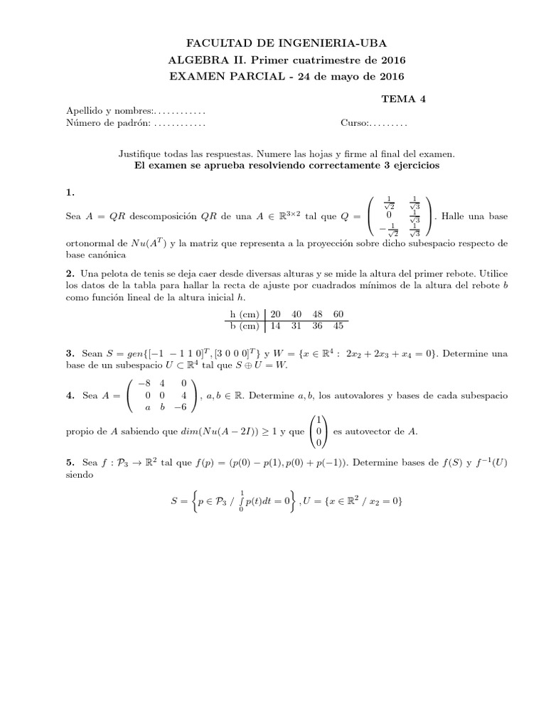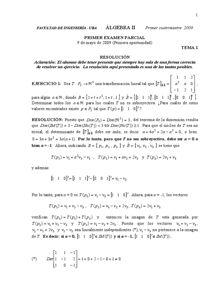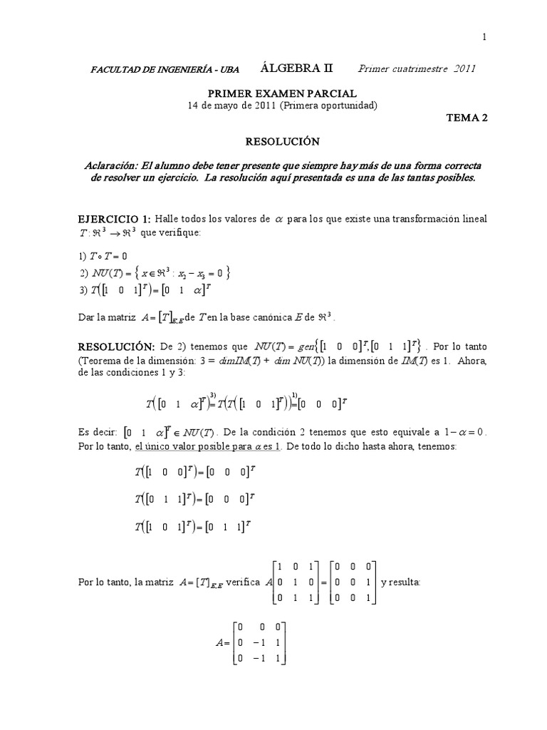 Examen Parcial Álgebra II UBA 2016 | PDF | Matemáticas Aplicadas ...