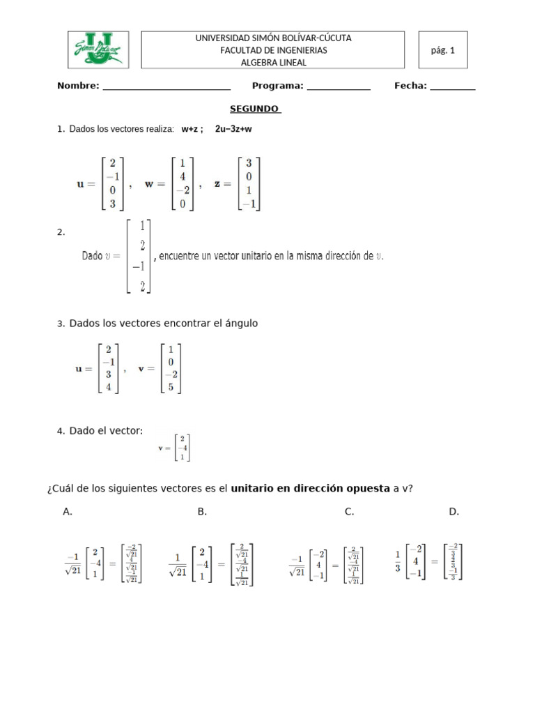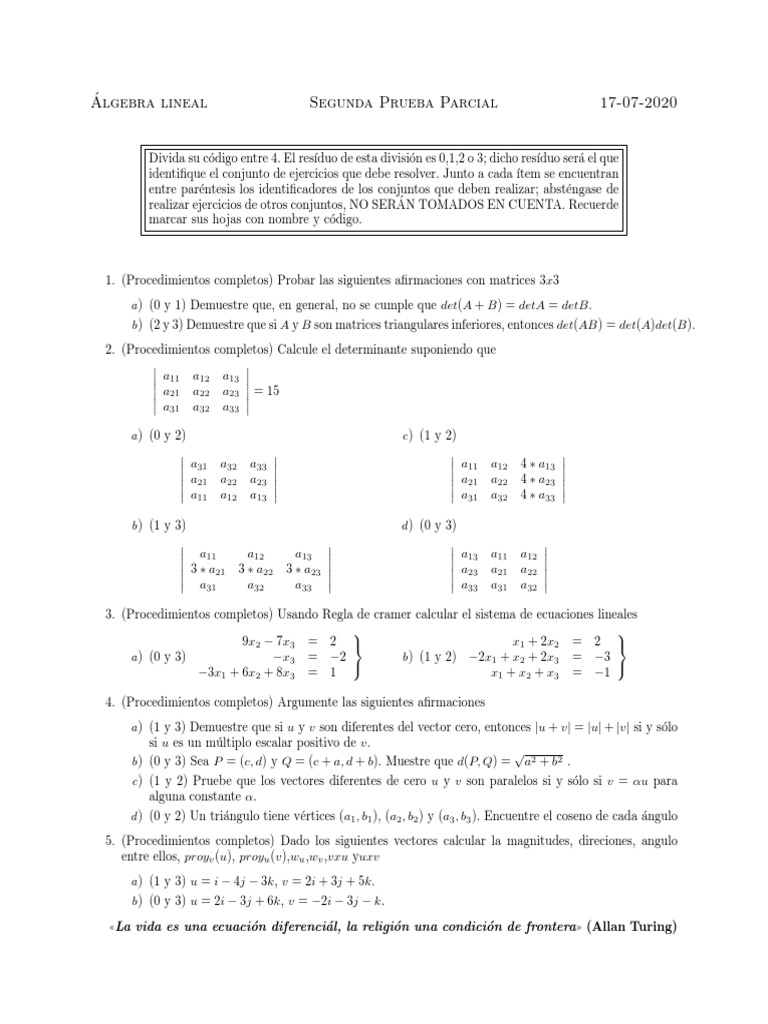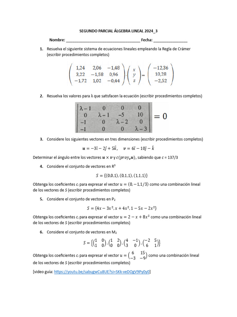 Segundo Parcial Álgebra Lineal | PDF | Métodos y materiales de enseñanza
