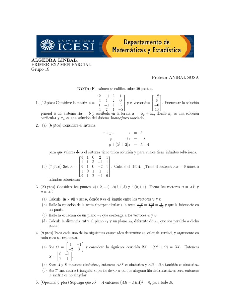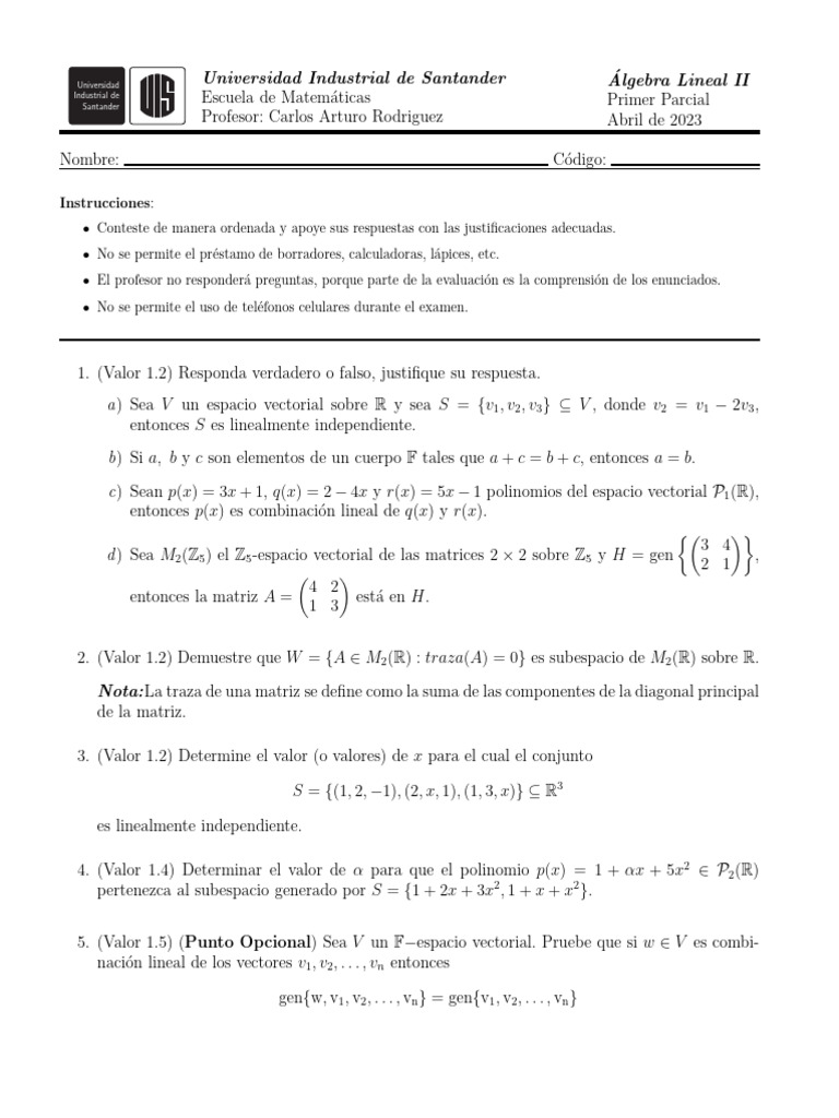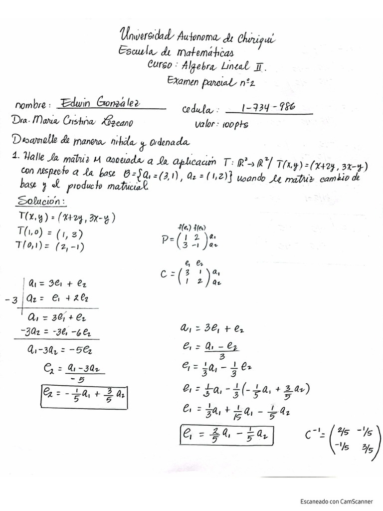 Parcial 1-Algebra Lineal II (PS2023) | PDF | Matriz (Matemáticas ...