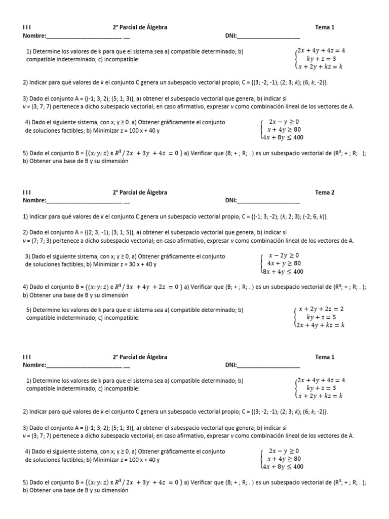 parciales viejos de algebra para el parcial segundo | PDF | Base ...