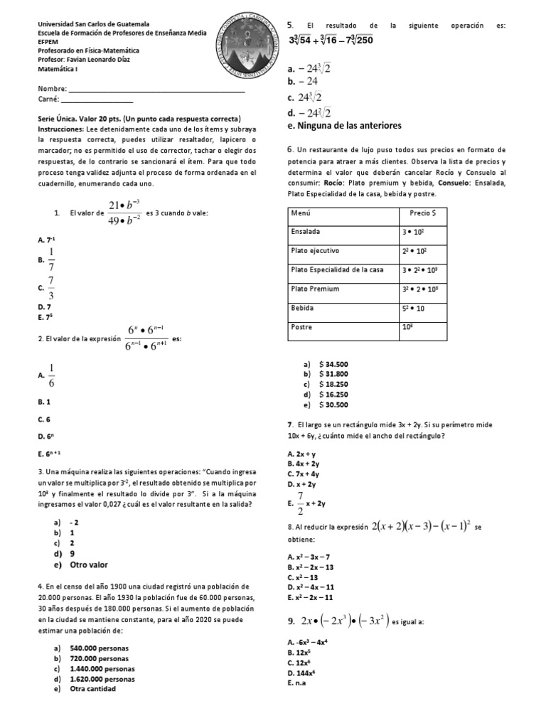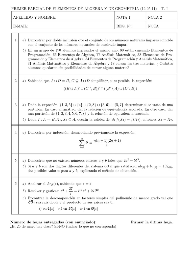 Parcial Algebra | PDF | Objetos matemáticos | Enseñanza de matemática