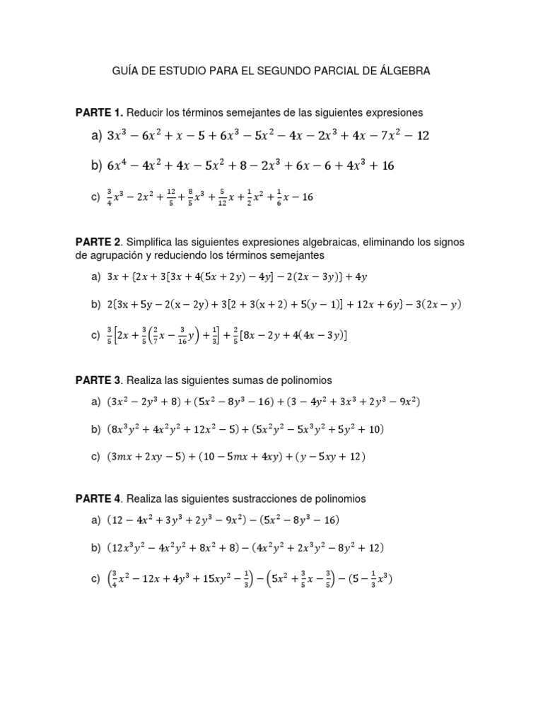 Guía de Estudio para El Segundo Parcial de Álgebra | PDF | Álgebra ...
