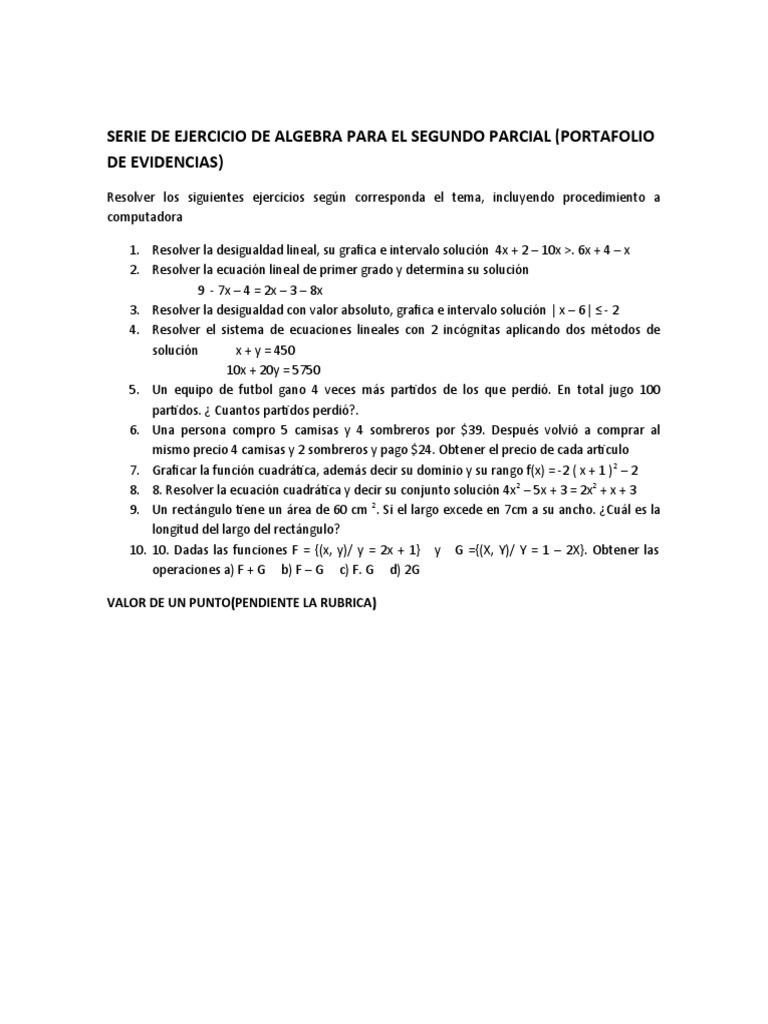 Evaluación Segundo Parcial Álgebra | PDF | Ecuaciones | Conceptos ...