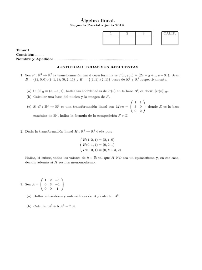 Parcial Algebra | PDF | Mapa lineal | Álgebra lineal
