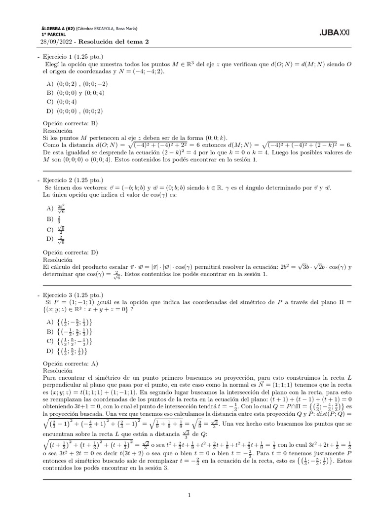 Modelo de parcial Algebra UBA XXI 2 | PDF | Vector Euclidiano | Ecuaciones