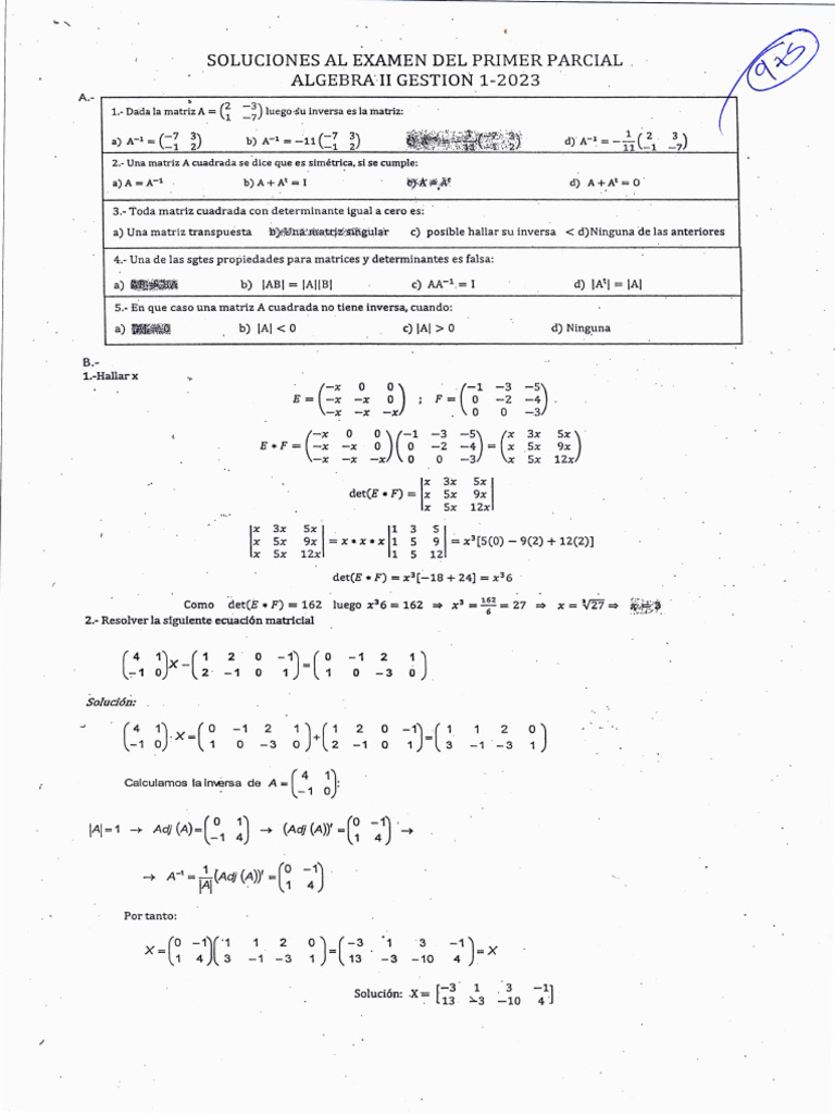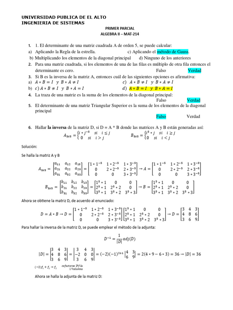 ÁLgebra II Primer Parcial Resuelto - Algebra II - UMSS - Studocu