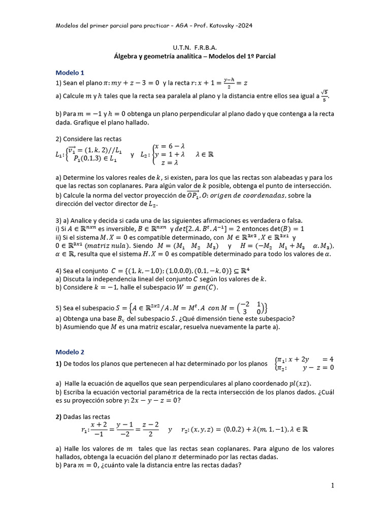Modelos de Parcial de Álgebra 2024 | PDF | Base (álgebra lineal ...