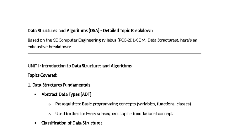 Data Structures and Algorithms (DSA) Comprehensive Topic Overview - Studocu