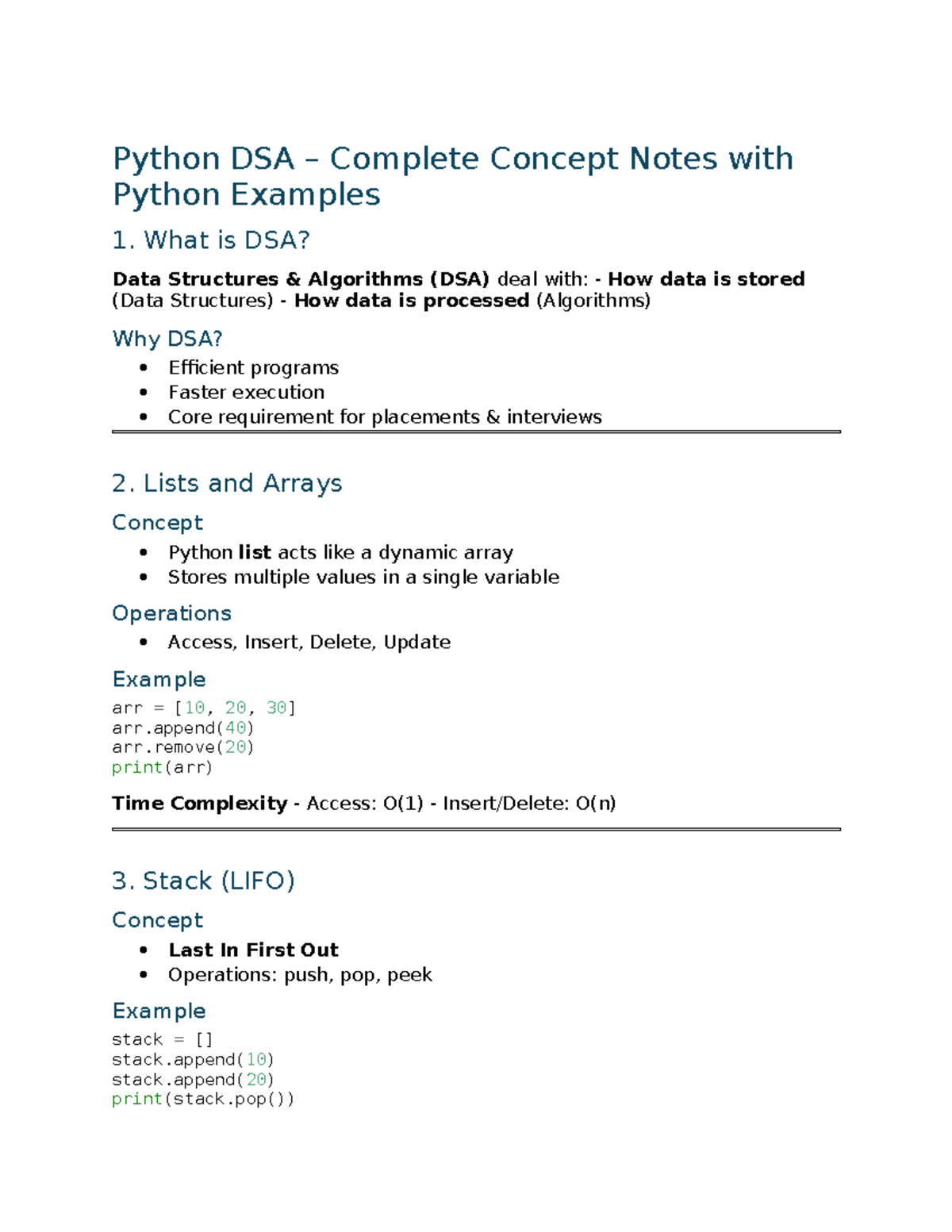 Python DSA (Data Structures & Algorithms) Complete Notes with Examples ...