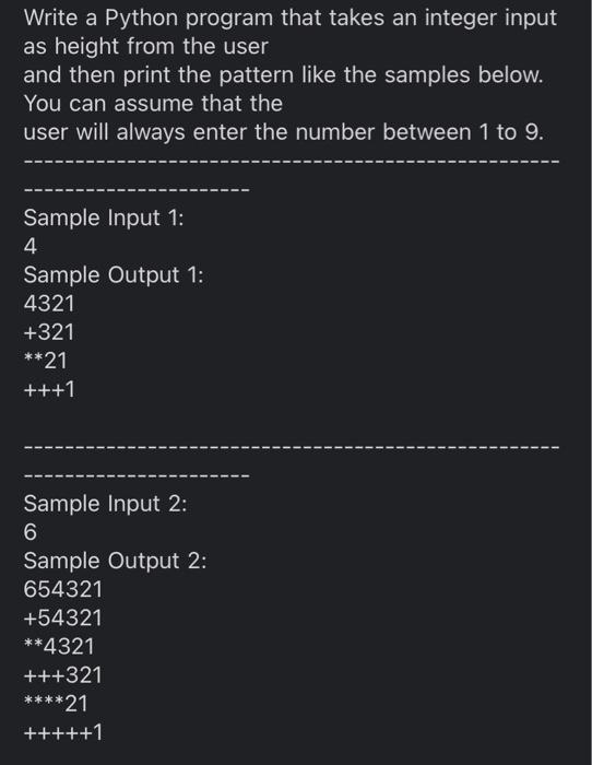 Solved Write a Python program to read the user input n from | Chegg.com