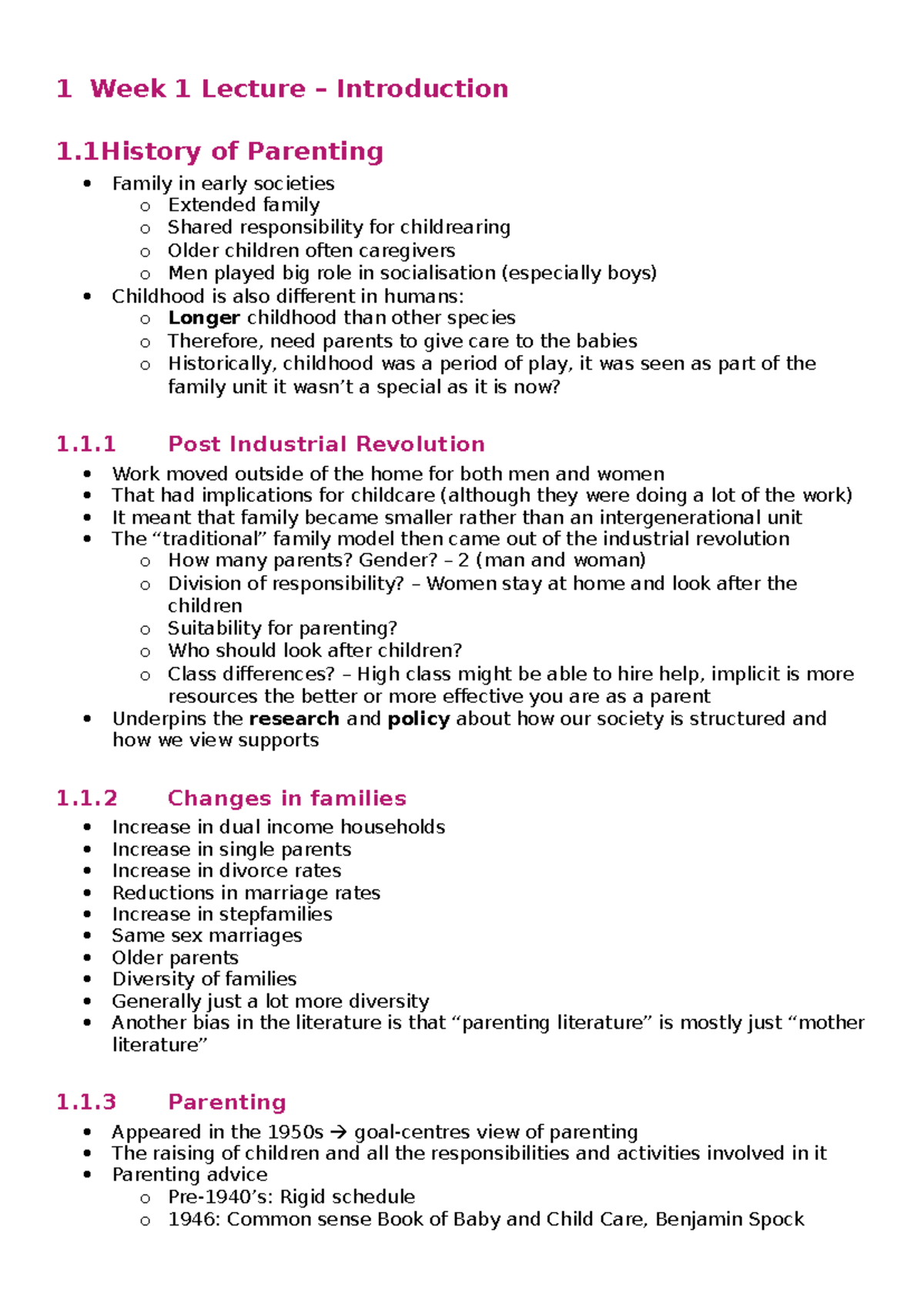 Course Content: Week 1 & 2 Lecture Notes on Parenting Dynamics - Studocu