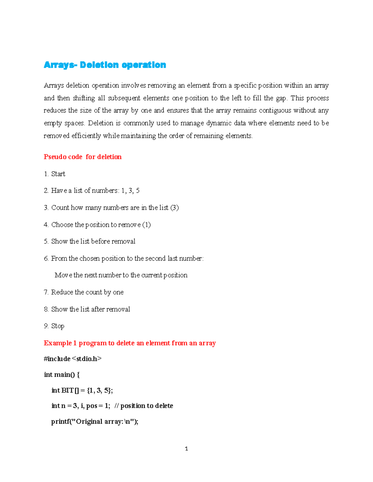 CS101: Unit I - Introduction to Array as an Abstract Data Type - Studocu