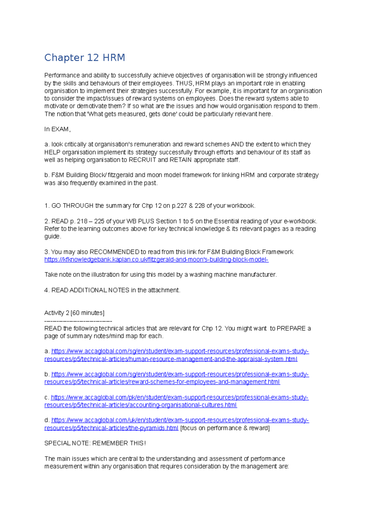 APM Notes Chapter 12HRM - Chapter 12 HRM Performance and ability to ...