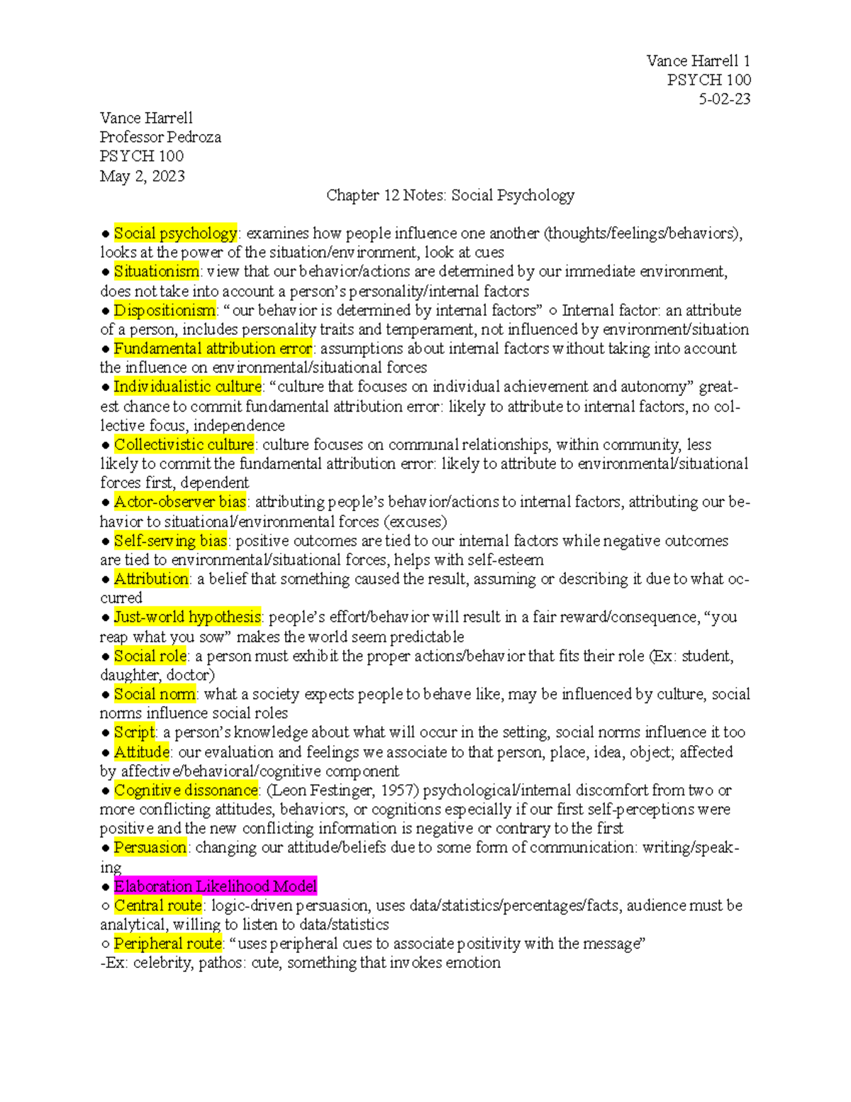 Chp 12 outline Psych 100notes - Vance Harrell 1 PSYCH 100 5-02- Vance ...
