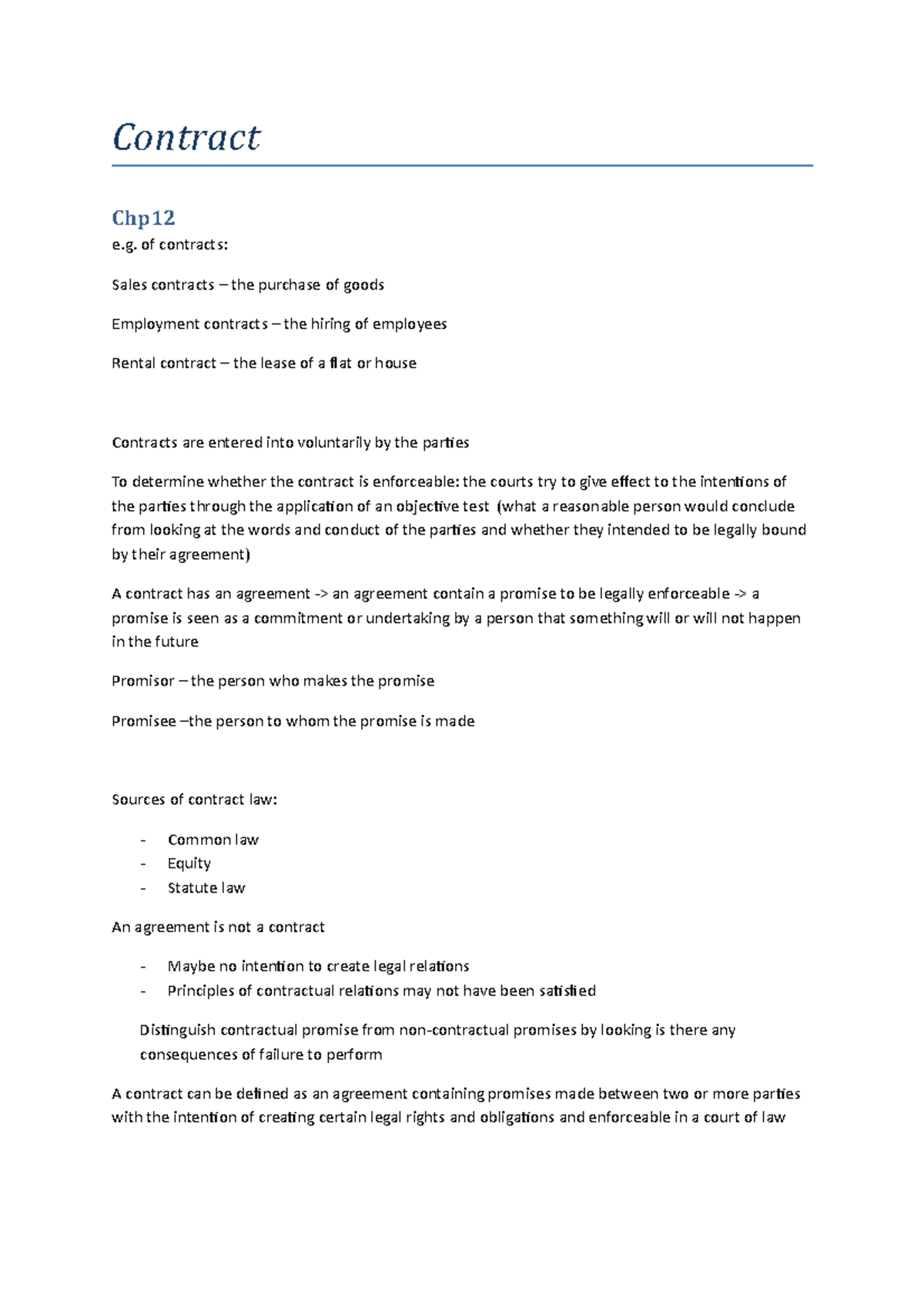 Busn1101 contracts - Lecture notes 12 - Contract Chp12 e. of contracts ...