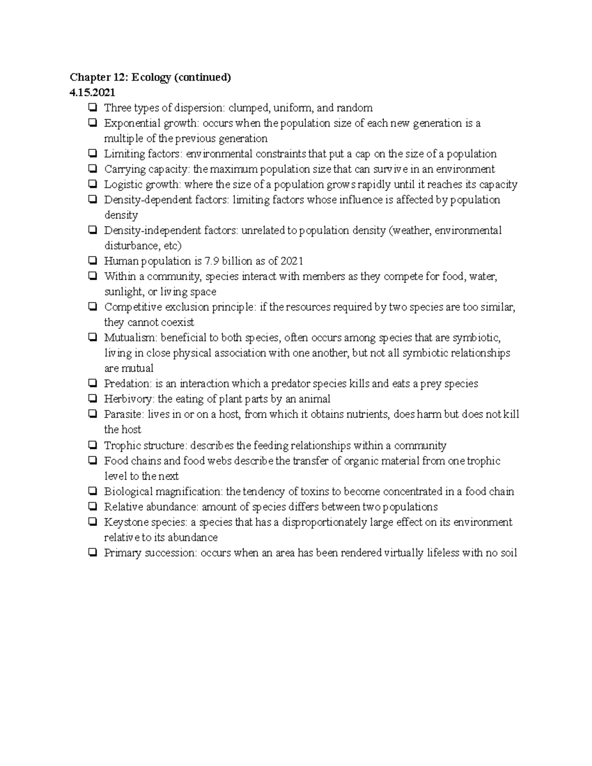 4.15.2021 chp12 - introduction to biology/microbiology notes (BIO101 ...