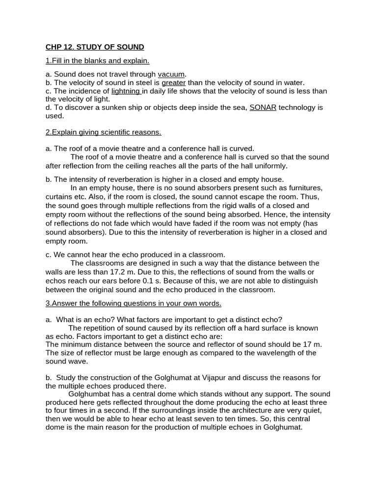 Class 9 Chp12.Sound Notes | PDF | Sound | Mirror