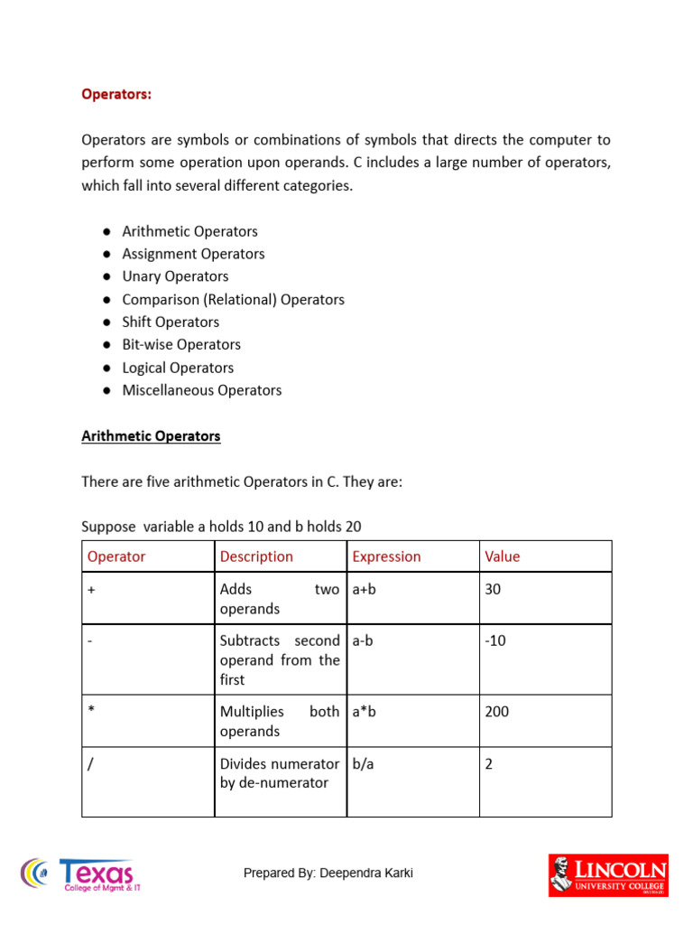 Comprehensive Guide to C Operators: Types and Examples | Course Hero