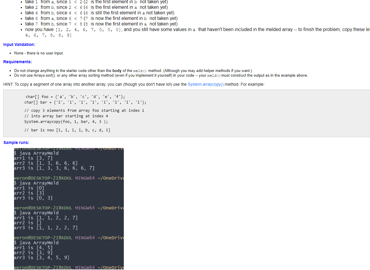Problem: Meld Two Sorted Arrays This problem is a bit | Chegg.com