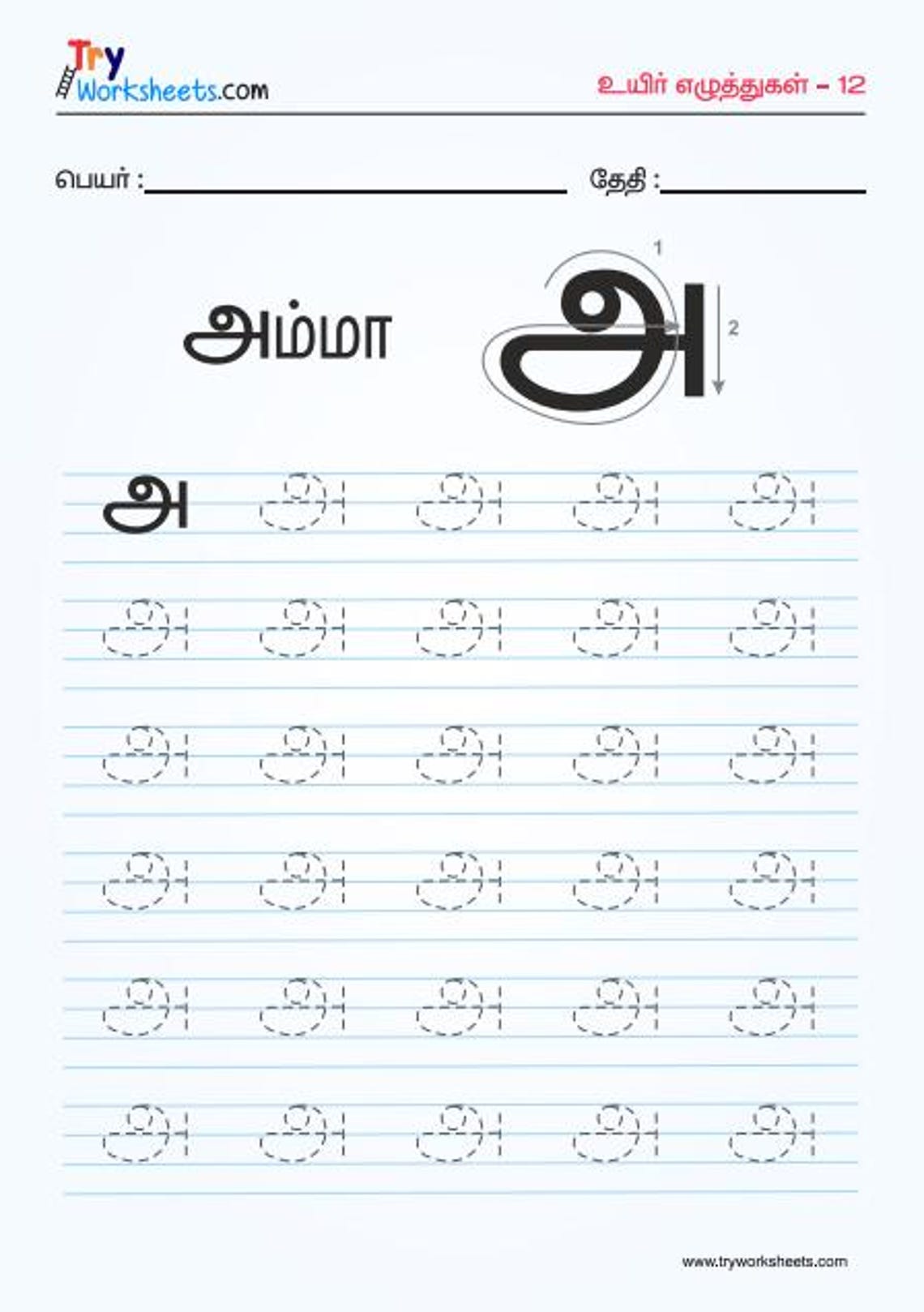 Learn Tamil Alphabets | Uyir Eluthukkal Tracing Worksheets | Printable ...