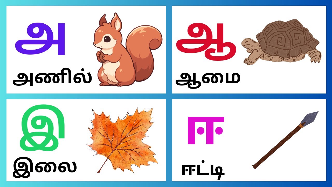 Tamil Alphabet Flashcards | Uyir Eluthukkal (12 Vowels) | Illustrated ...