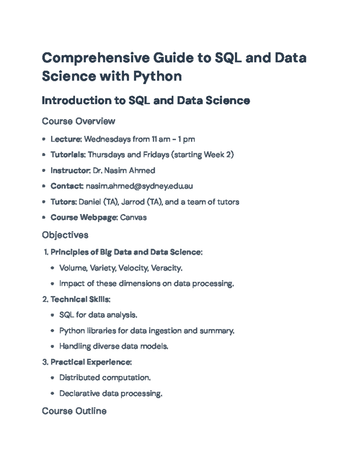 Introduction to SQL and Data Science with Python (DATA1002) - Course ...
