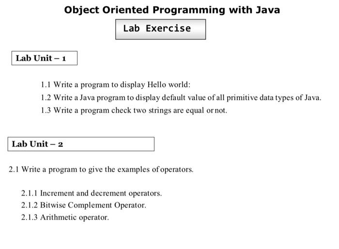 Based on this image's title: “OOP with Java Lab Exercises - Object Oriented Programming with Java 1 ...