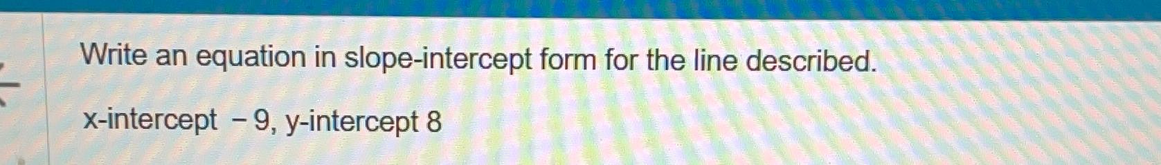 Solved Write an equation in slope-intercept form for the | Chegg.com